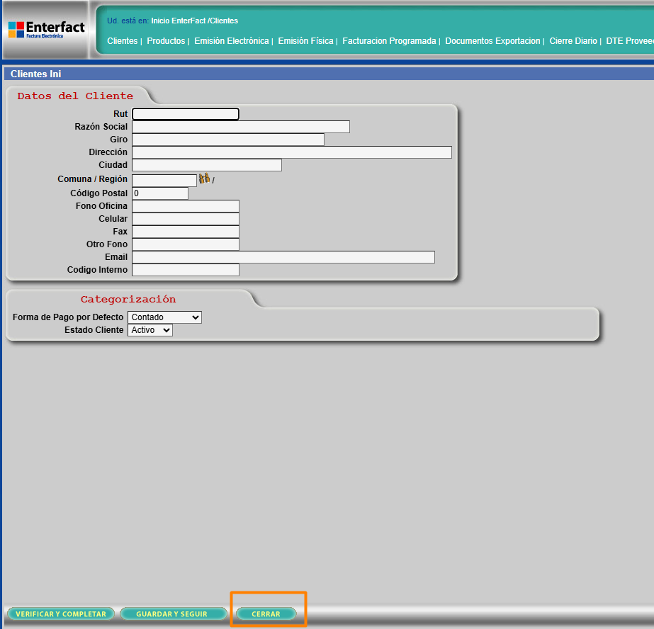 Si necesitas cancelar la creación del cliente, presiona el botón "Cerrar". ❌