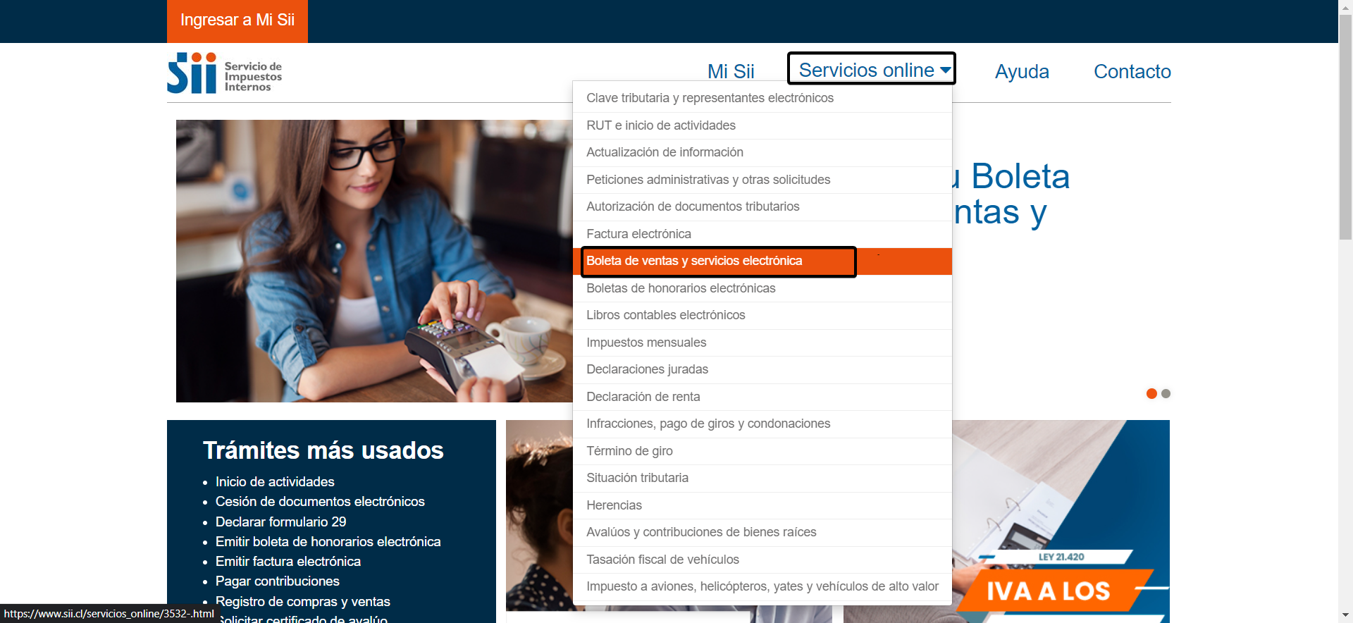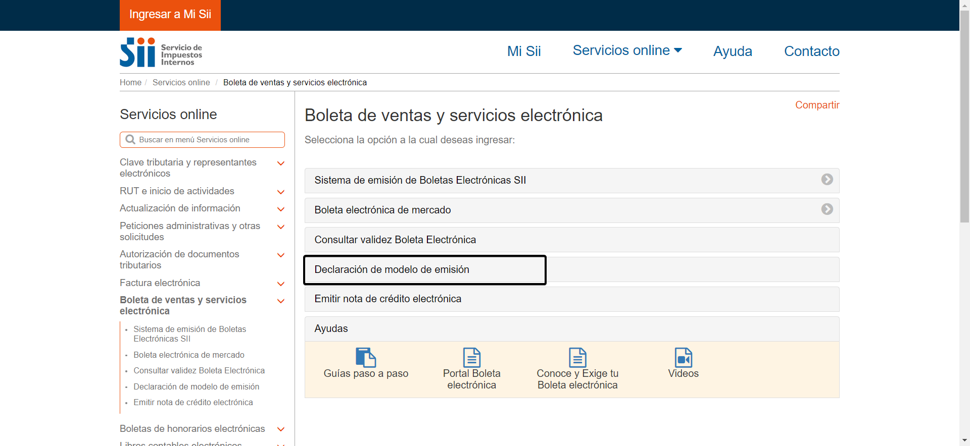 En el menú superior, selecciona Servicios Online y luego Boleta de Ventas y Servicios Electrónica. También puedes ingresar directamente haciendo clic AQUÍ.