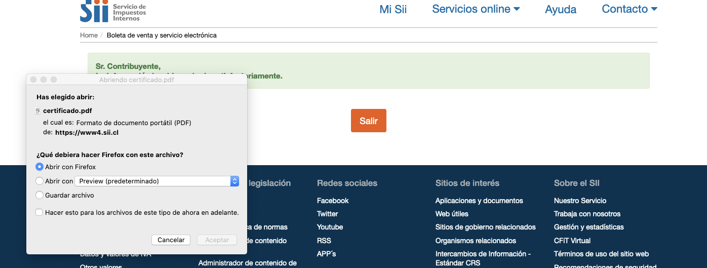 A continuación, podrás descargar el comprobante de la declaración en formato PDF.