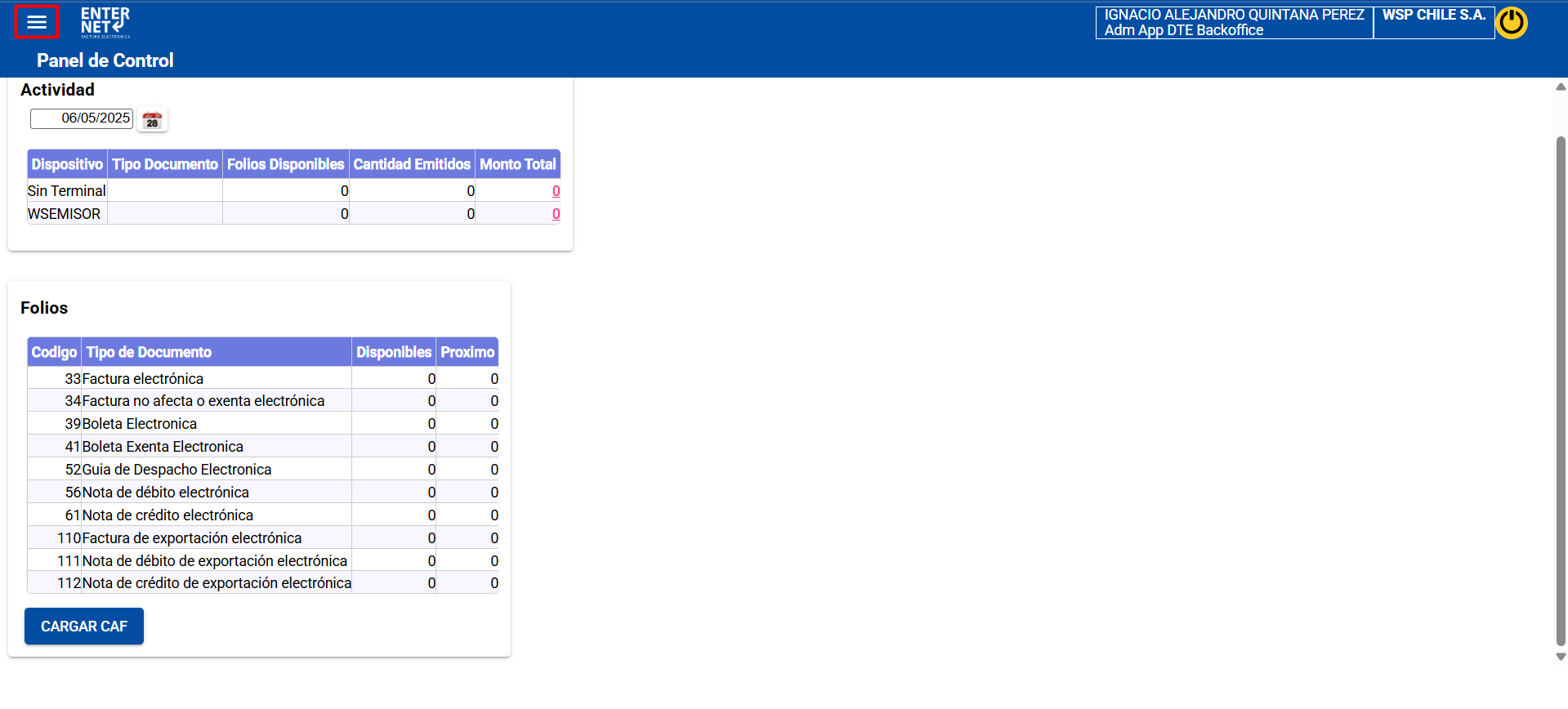 Para poder revisar las emisiones realizas nos dirigimos a las tres lineas de la parte superior izquierda.