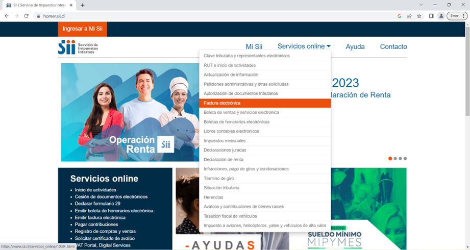 En primer hay que dirigirse al SII, donde debemos seguir la siguiente ruta: