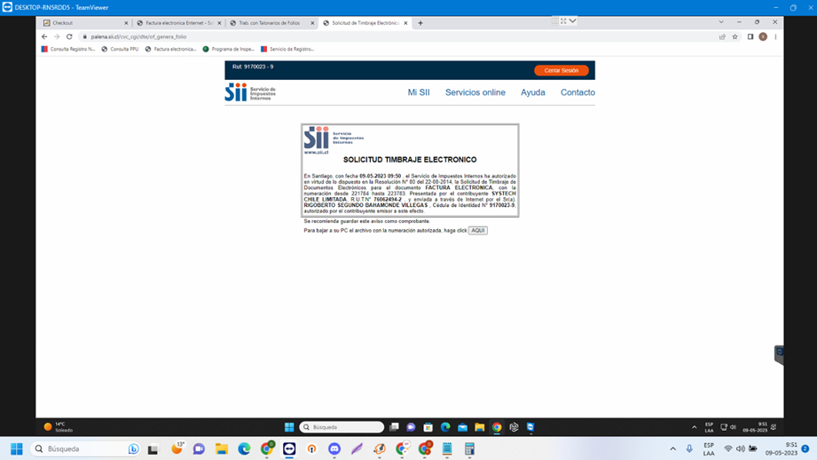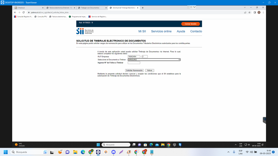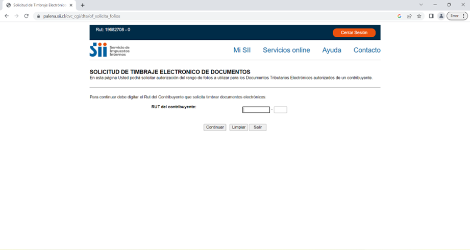 Posterior a esto, debemos ingresar el RUT de la empresa por la cual solicitaremos los folios y hacer clic en “Continuar”.