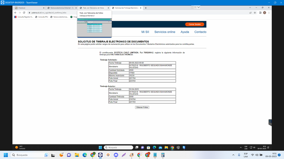 Una vez hecho esto, nos aparecerá lo siguiente, donde debemos hacer clic en “Obtener folios”
