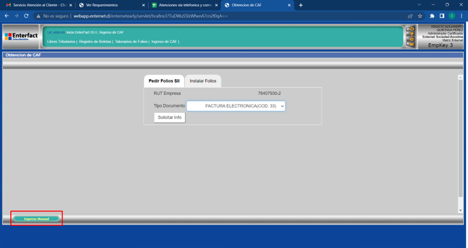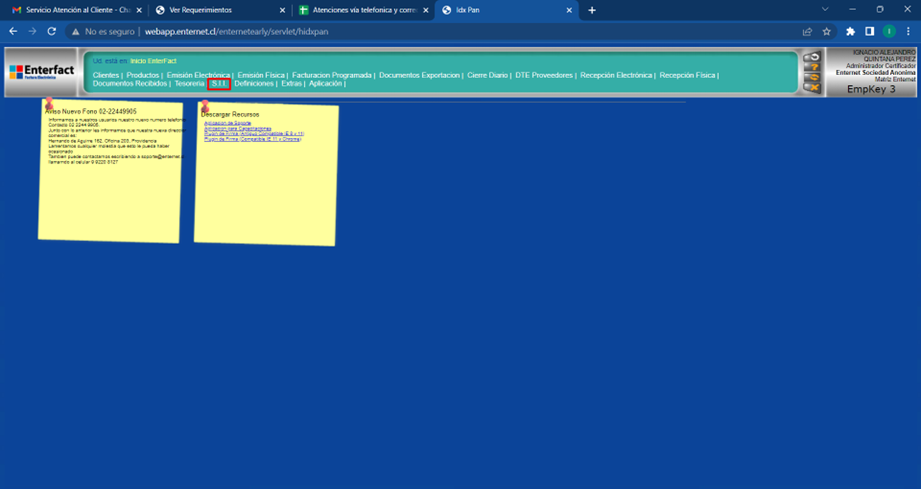 Ya obtenido el archivo .XML que contiene los folios, nos dirigimos a Enterfact, donde haremos clic en la opción “SII”