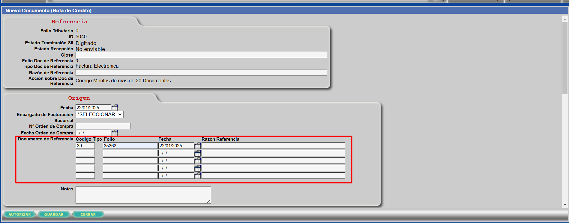 Con esto se nos abrirá la siguiente interfaz, donde podremos referenciar hasta 5 documentos, en este apartado tenemos que llenar los siguientes datos