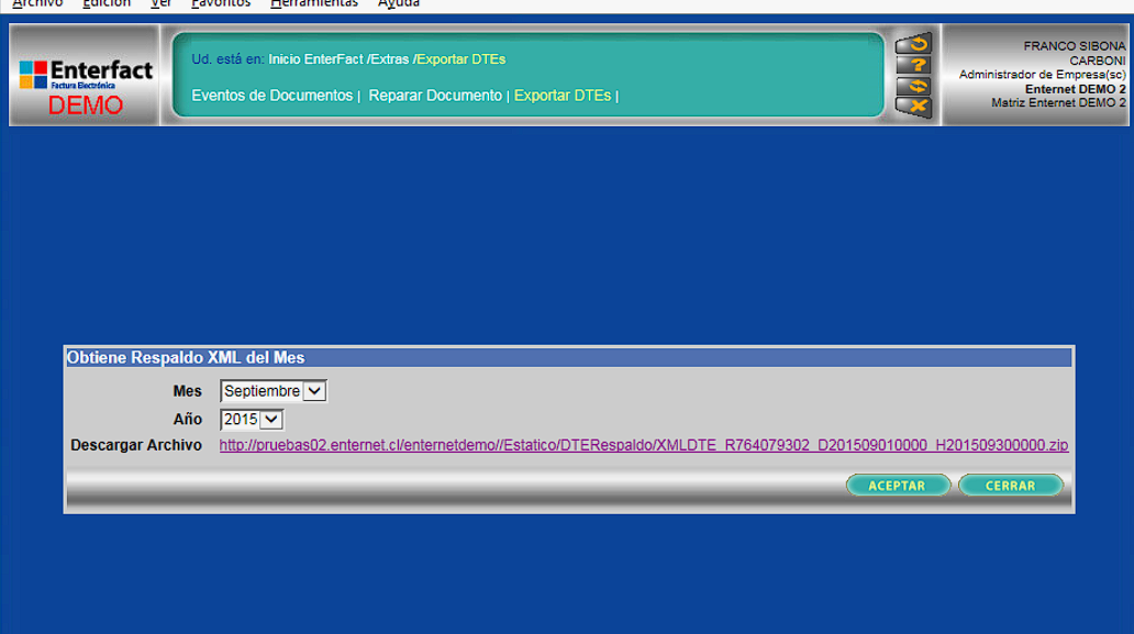 Si tienes dudas o necesitas apoyo para descargar los archivos XML, puedes contactar directamente a Soporte Enternet al +56 2 2583 1910 o soporte@enternet.cl, quienes te asistirán en línea.