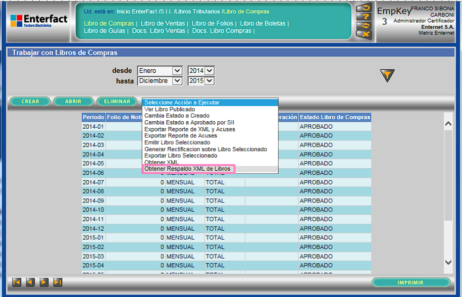 Inicio EnterFact → S.I.I. → Libros Tributarios → Libro de Compras