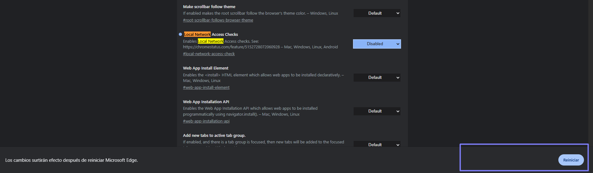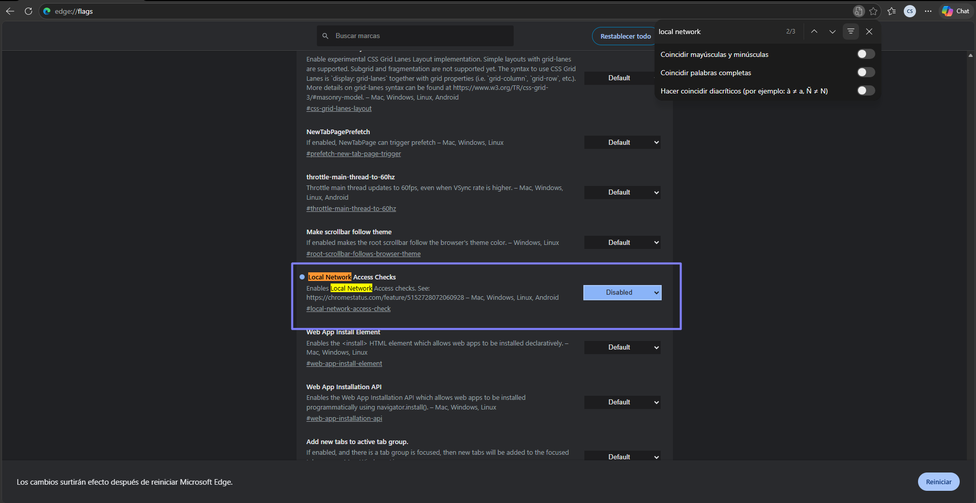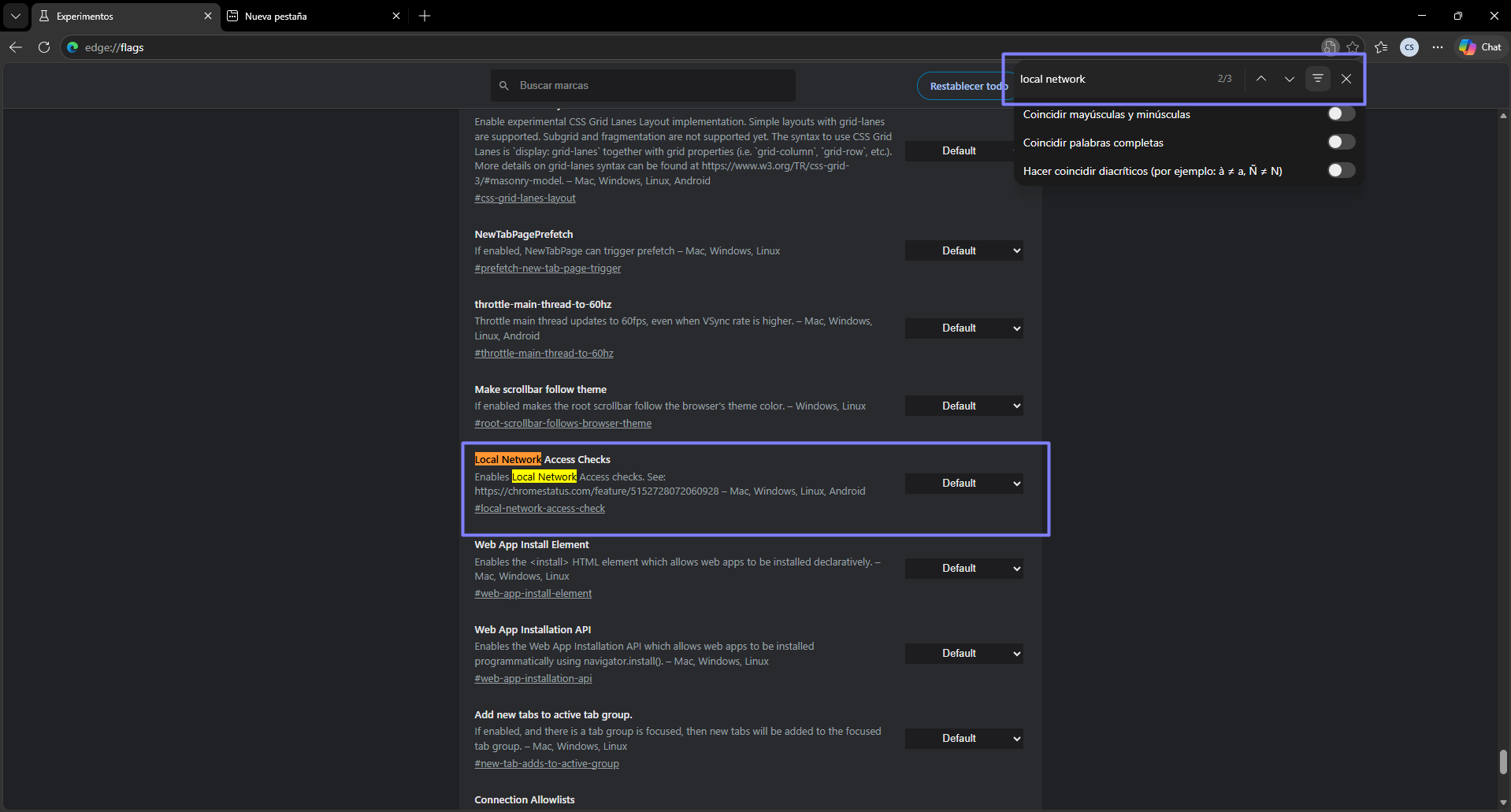 edge://flags/- Presiona Enter