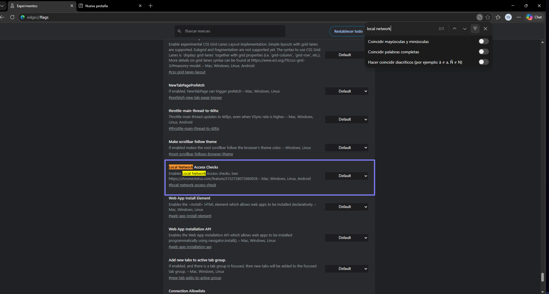 Paso 2: Busca "Local Network Access Checks"